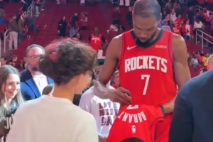 賽后,杜蘭特頻繁互動(dòng),遲遲未離開(kāi)。