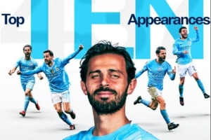 據(jù)統(tǒng)計(jì),這是B席第437次代表曼城出場(chǎng),躋身隊(duì)史出場(chǎng)次數(shù)前十,具體榜單如下: