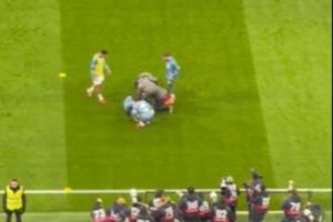 體育資訊01月17日訊 皇馬vs萊萬特賽前,姆巴佩熱身搶圈訓(xùn)練時(shí)遭赫伊森誤傷,痛苦捂住腳踝,長時(shí)間接受隊(duì)醫(yī)治療后,一瘸一拐起身。