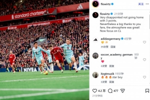 他也在賽后通過社媒曬出自己的比賽照,并配文:“沒能帶走3分,非常失望。不過還是要非常感謝球迷們,現(xiàn)場氣氛太棒了!現(xiàn)在要專注于歐冠了。”