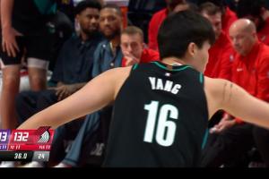 GIF-楊瀚森背打翻身出手~!!給了走步違例~??!