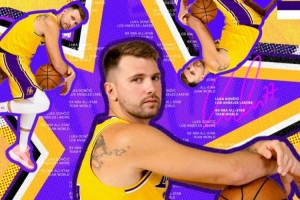 湖人球星東契奇成功入選西部首發(fā),并成為全聯(lián)盟票王!湖人官方發(fā)布東契奇兩張海報(bào)。