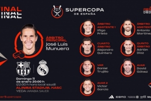 體育資訊1月10日訊 西班牙足協(xié)官方公布了西超杯決賽裁判安排情況,主裁判為何塞·路易斯·穆努埃拉。